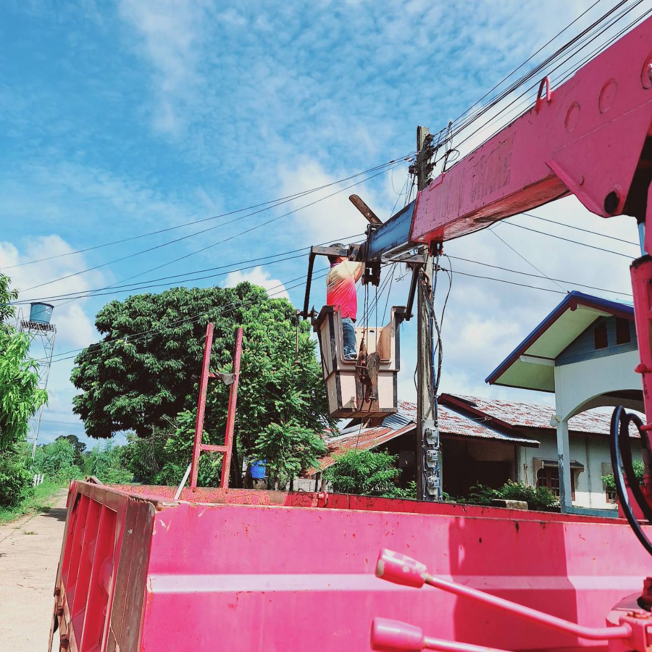 นายอุดร แก่นจันทร์ นายกเทศมนตรีตำบลโพนงาม มอบหมายให้เจ้าหน้ากองช่างเทศบาลตำบลโพนงามดำเนินการซ่อมแซมไฟฟ้าส่องสว่าง(ตามคำร้อง)บ้านโนนสว่าง หมู่ที่3และหมู่ที่11 จำนวน15 จุด