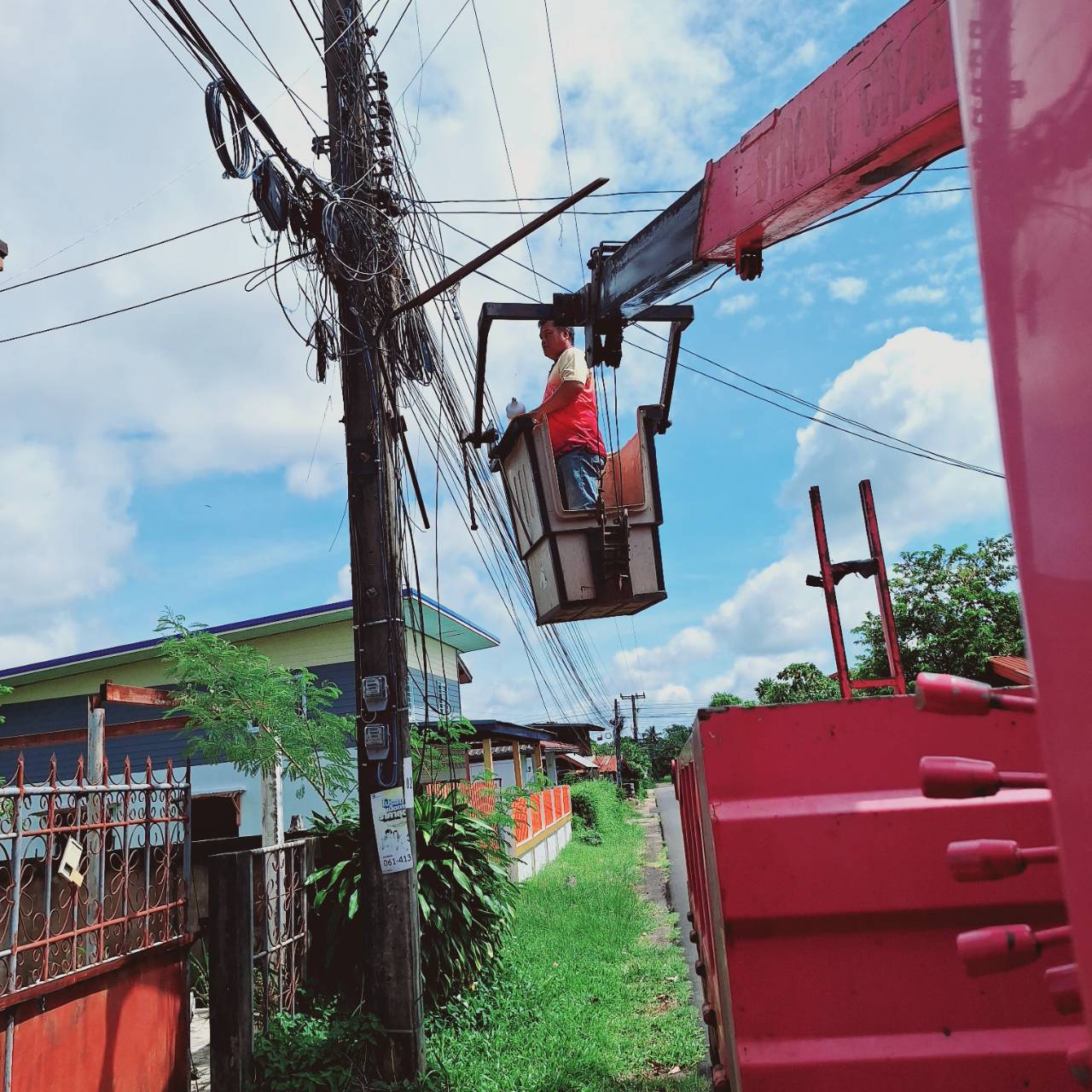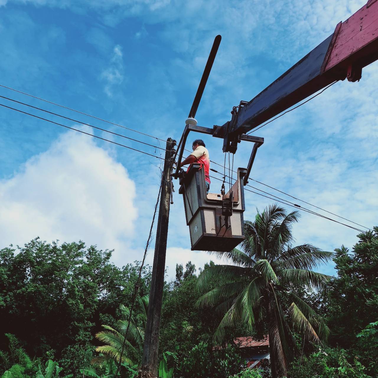 เจ้าหน้ากองช่างเทศบาลตำบลโพนงามดำเนินการซ่อมแซมไฟฟ้าส่องสว่าง(ตามคำร้อง)บ้านโนนสว่าง หมู่ที่3และหมู่ที่11 จำนวน15 จุด