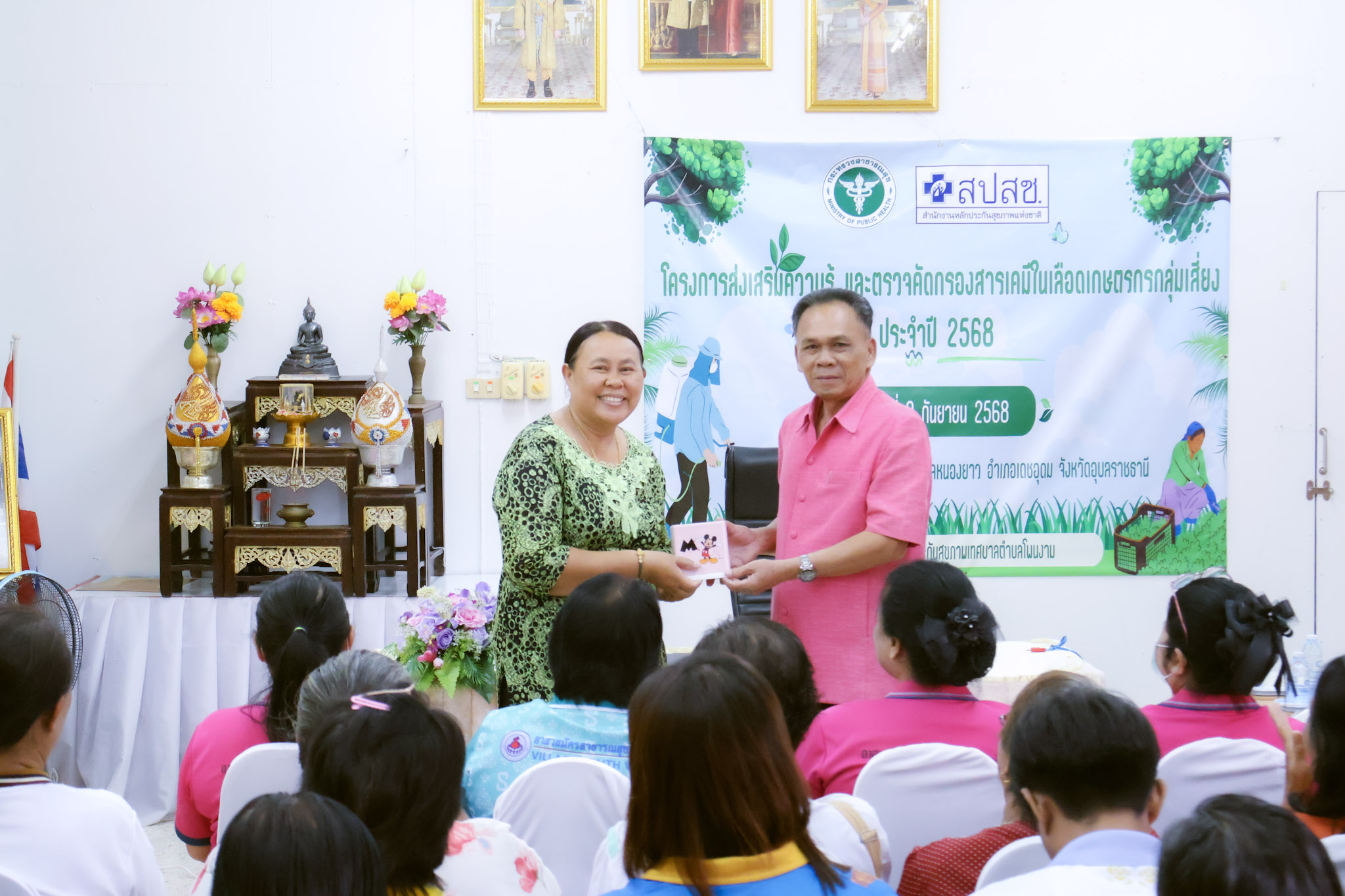 นายอุดร แก่นจันทร์ นายกเทศมนตรีตำบลโพนงาม ได้รับเกียรติเป็นประธานเปิด โครงการส่งเสริมความรู้และตรวจคัดกรองสารเคมีในเลือดเกษตรกรกลุ่มเสี่ยง ประจำปี 2568