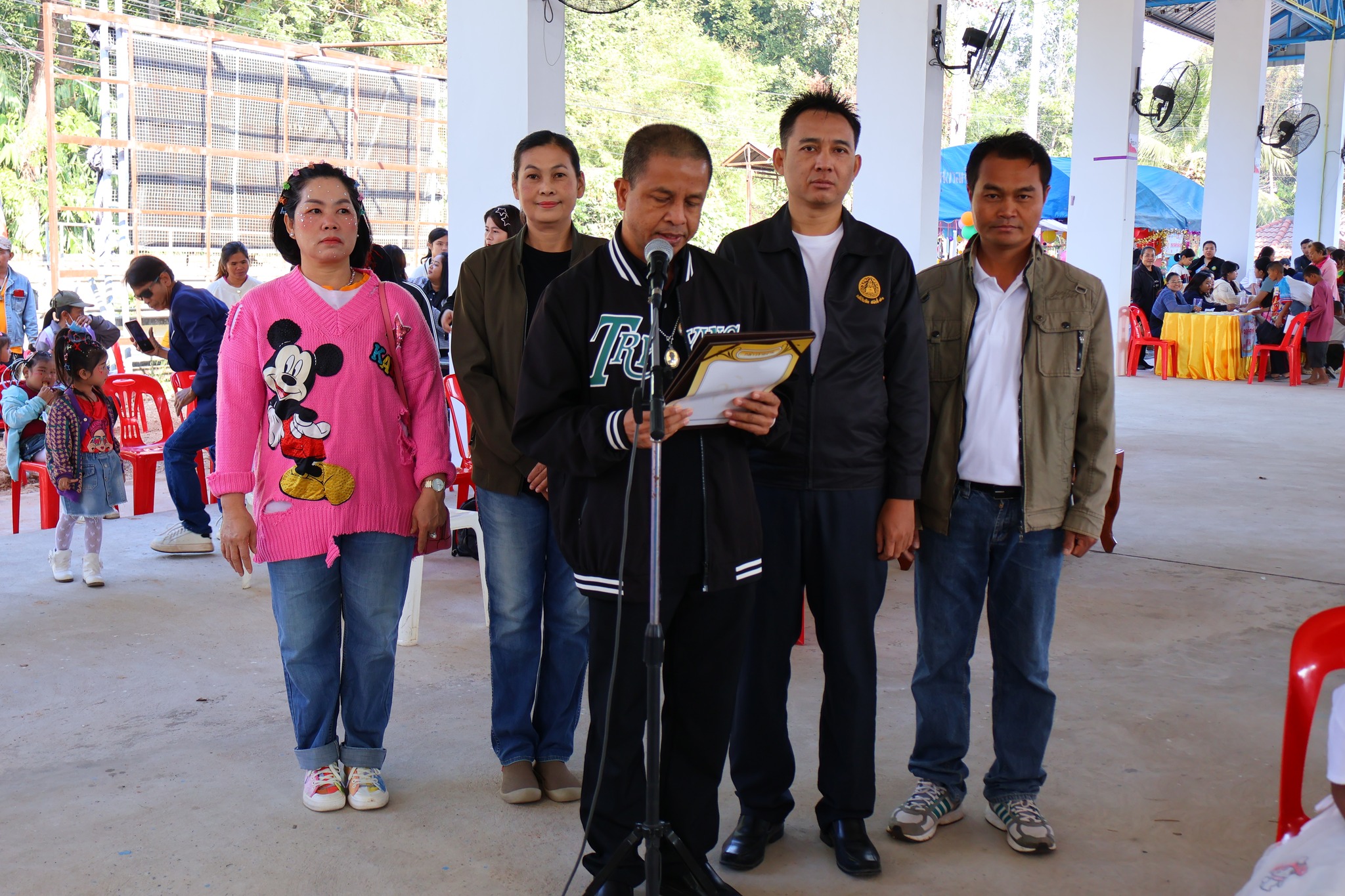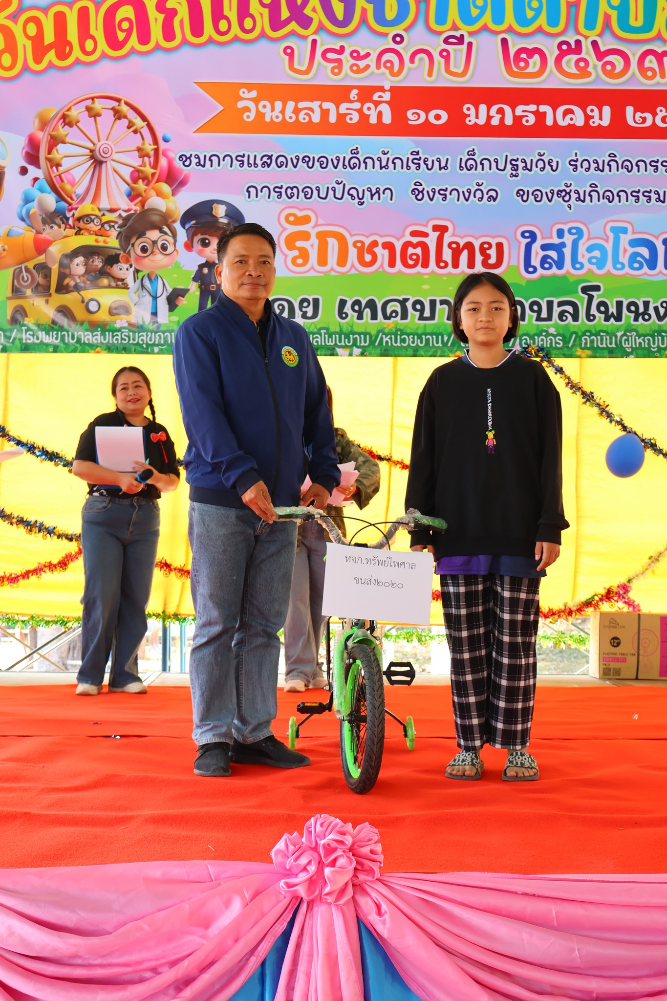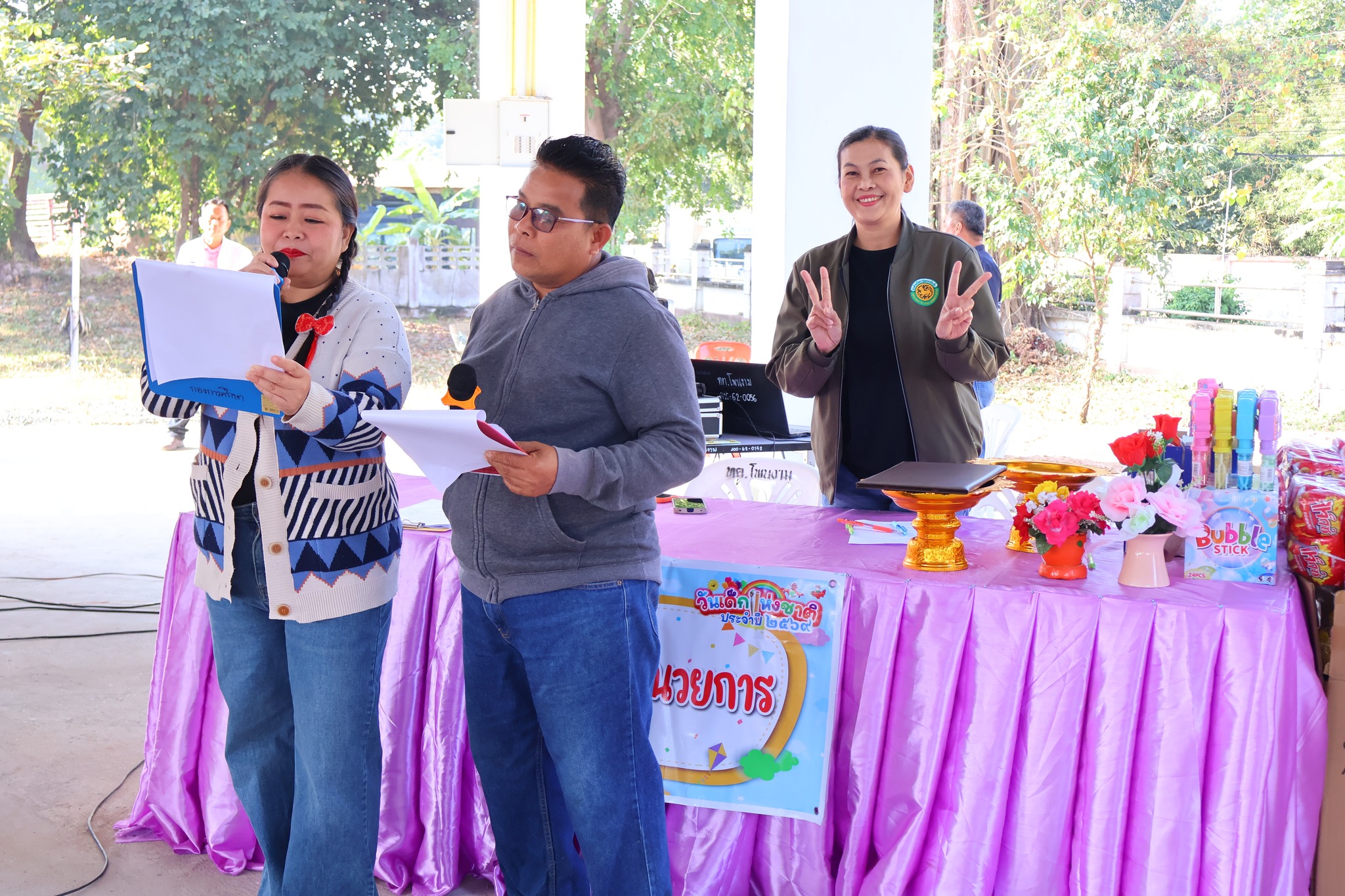 และ นายทองสุข เนตรวงศ์ รองปลัดเทศบาลตำบลโพนงาม เป็นผู้อ่านสารวันเด็กแห่งชาติ