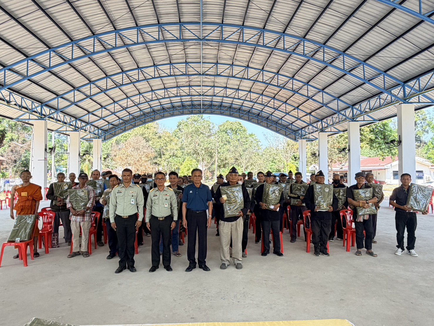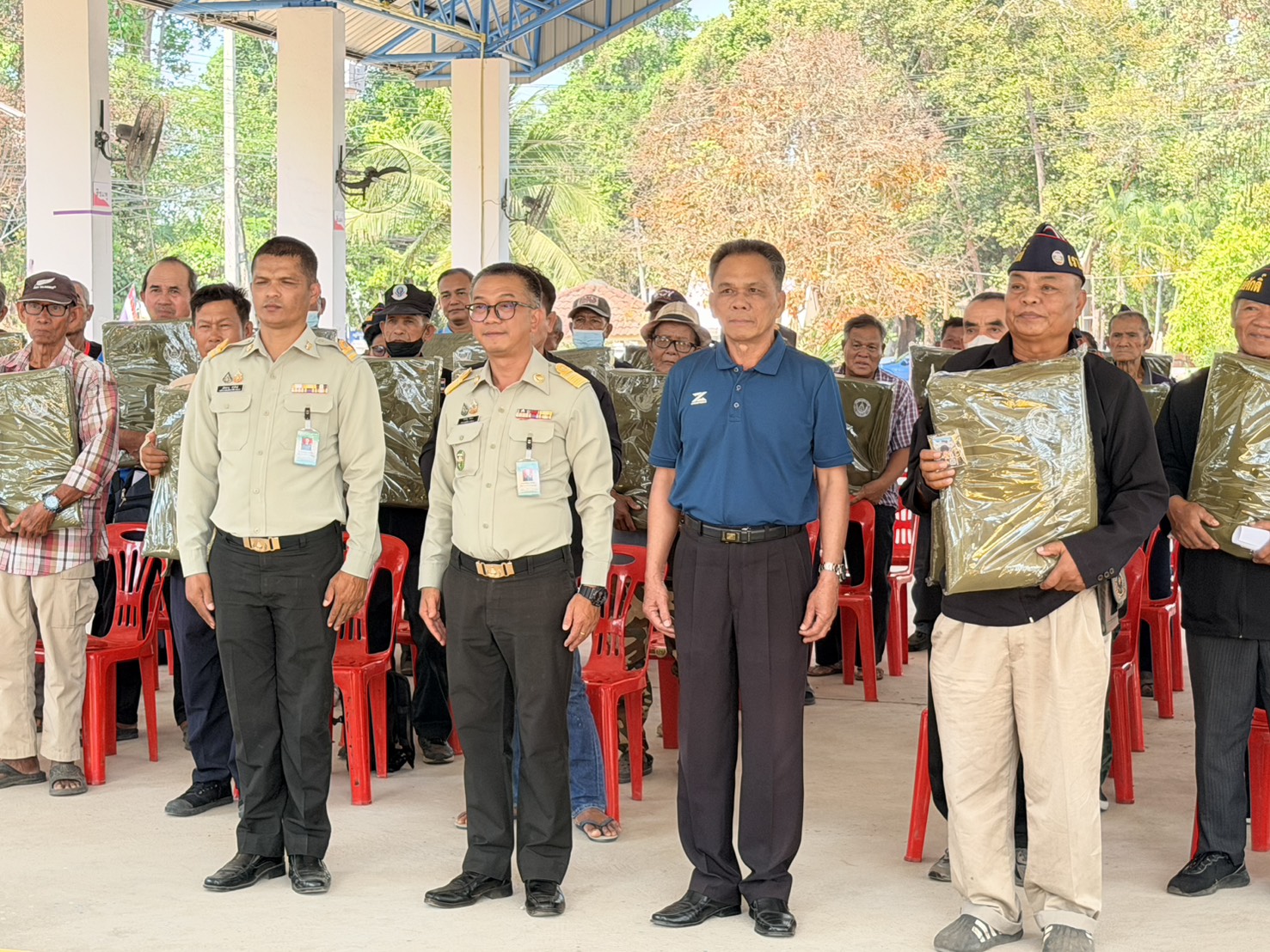 ร่วมมอบของที่ระลึกให้แก่ทหารผ่านศึก ณ โดมอเนกประสงค์เทศบาลตำบลโพนงาม