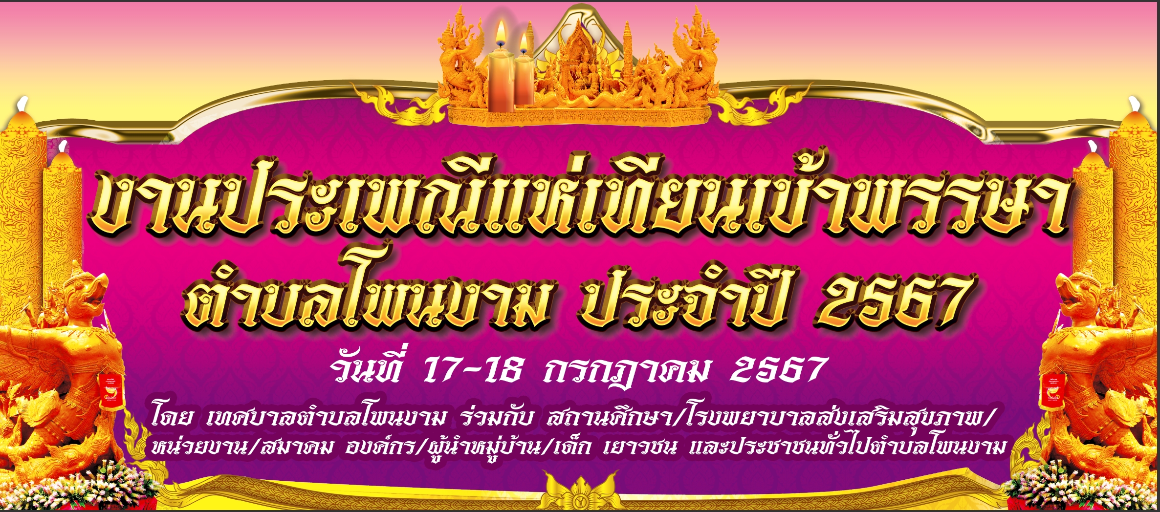 ขอเชิญเที่ยวงานประเพณีแห่เทียนเข้าพรรษา ตำบลโพนงามประจำปี 2567 ในวันที่ 17-18 กรกฎาคม 2567