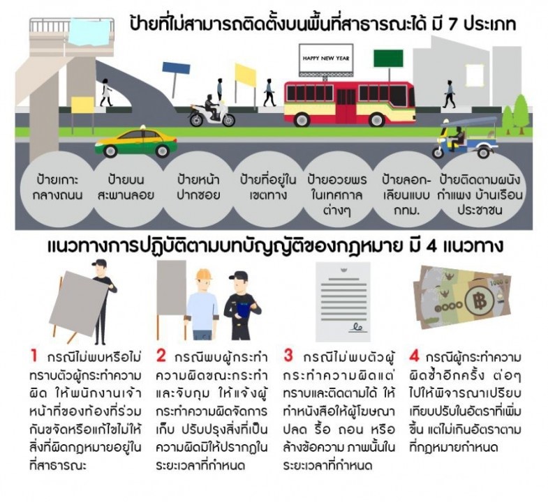 ประชาสัมพันธ์การกระทำอันเป็นการฝ่าฝืนกฎหมายเกี่ยวกับการติดตั้งป้ายโฆษณาหรือสิ่งอื่นใดที่รุกล้ำทางสาธารณะ