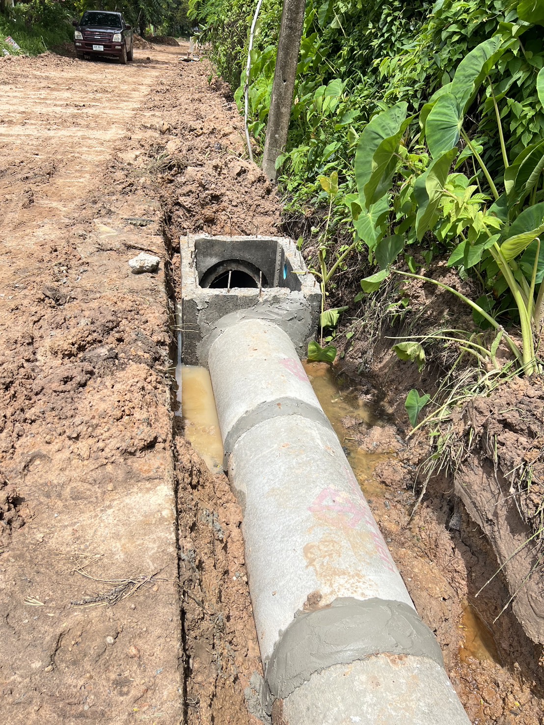 โครงการวางท่อระบายน้ำพร้อมบ่อพัก จากแยกศาลาประชาคมถึงป้อมเฉลิมพระเกียรติ บ้านโพนงาม หมู่ที่13